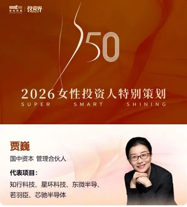 作为国中资本管理合伙人,贾巍女士长期主导公司在AI+与具身智能、半导体与电子信息等前沿科技方向的投资布局。她始终践行“研究先行,投研结合”的国中投资理念,秉承“扶小做大”,带领团队深耕产业、前瞻布局,推动了一批具备核心技术能力和高成长潜力的创新企业快速成长。在她的带领下,国中资本在硬科技领域的投资成效显著,已成功投出星环科技、东微半导、清微智能、极佳视界、灵心巧手、众擎机器人等多个明星项目,涵盖多个重点硬科技赛道,持续助力中国科技创新与产业升级。