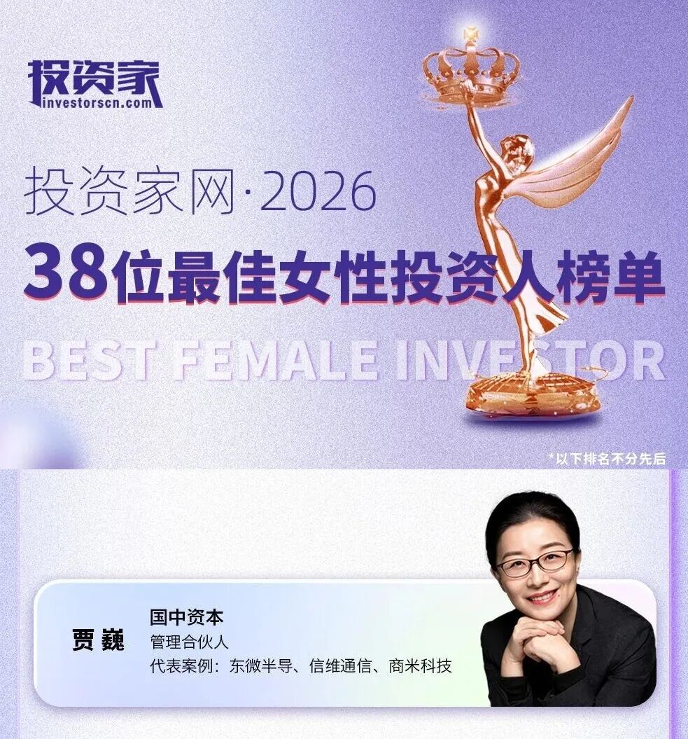 近期,多家权威行业媒体相继发布年度女性投资人榜单,致敬在股权投资领域做出突出贡献的女性领导者。国中资本管理合伙人贾巍凭借卓越的投资业绩与深刻的行业影响力,荣获多项年度女性投资人荣誉,持续获得业界高度关注与认可。